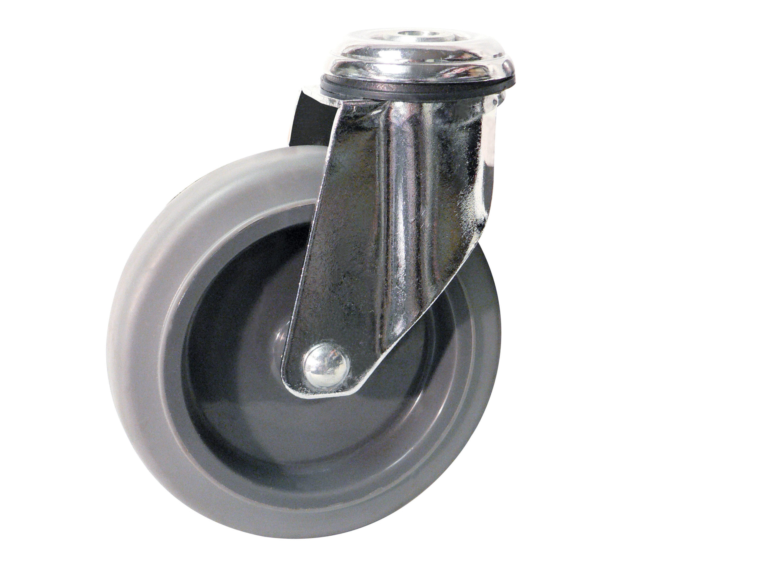 • Roulettes pivotantes avec chape en acier embouti, sur un double chemin de bille. Fixation à oeil.