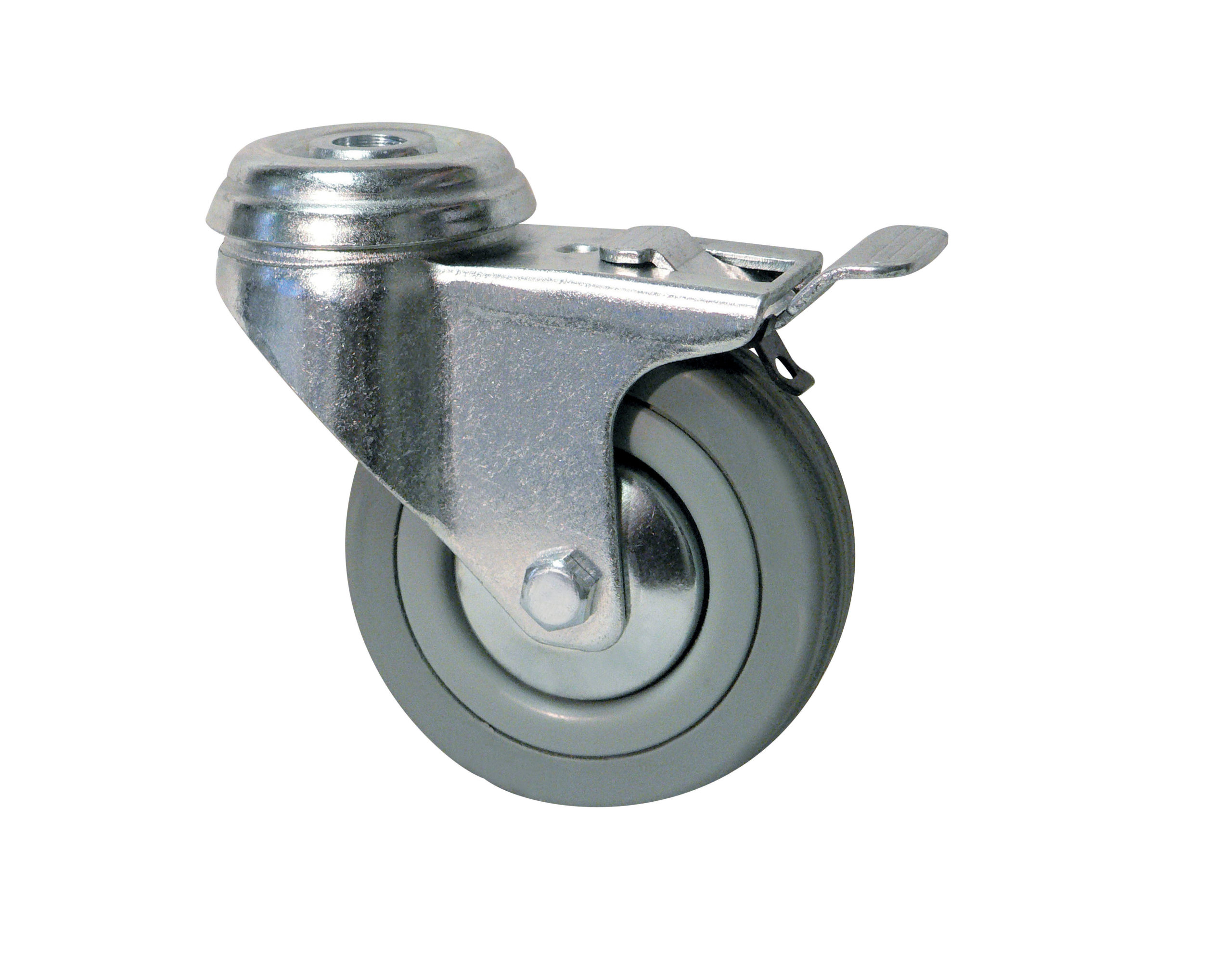 • Roues avec bandage caoutchouc gris/corps en polypropylène ou roues en polypropylène noir, alésage lisse.