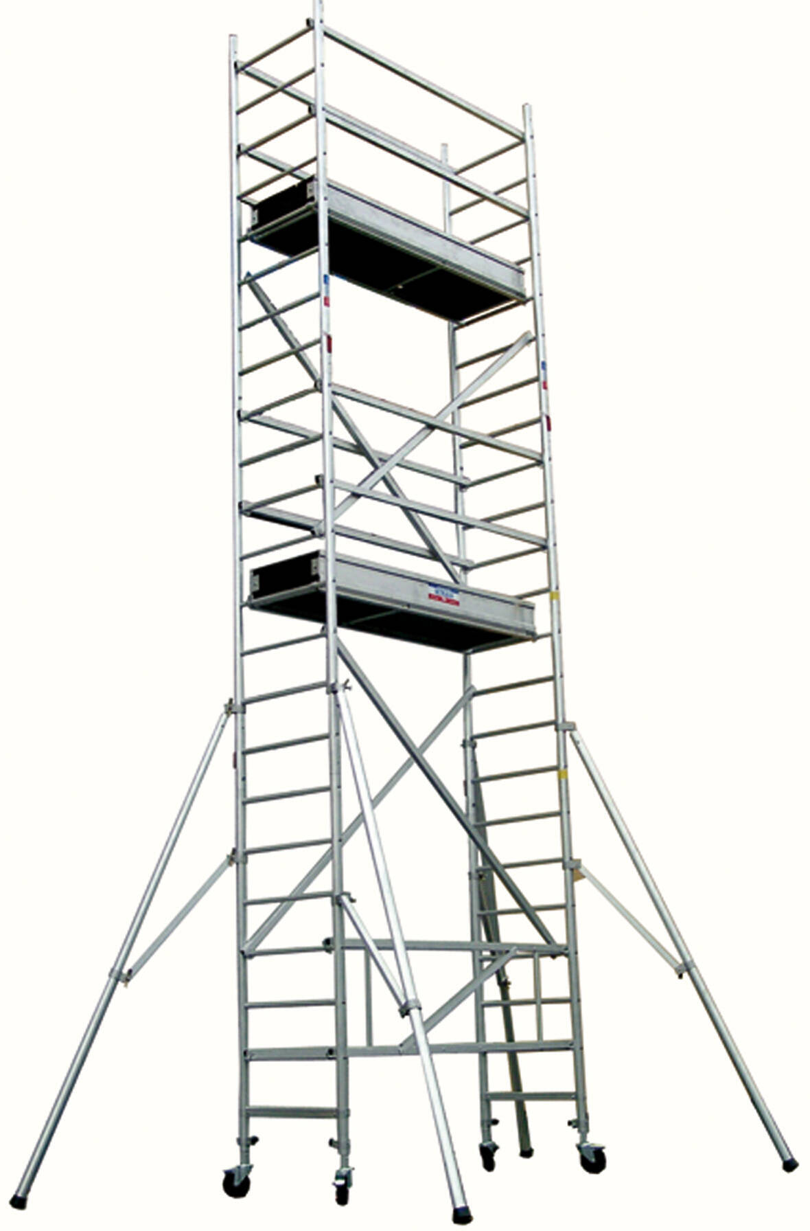 Echafaudage roulant alu avec contreventement – L: 2,40 m ? H: 5 m ? 2 plateaux