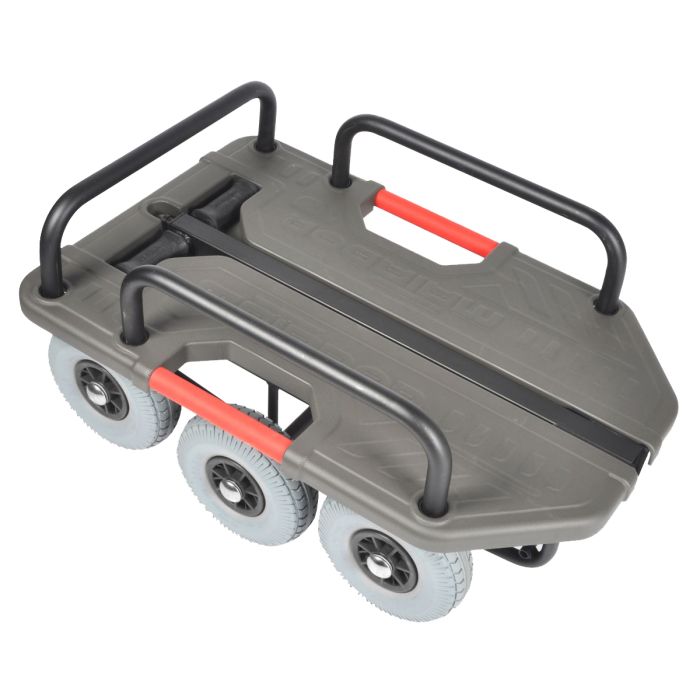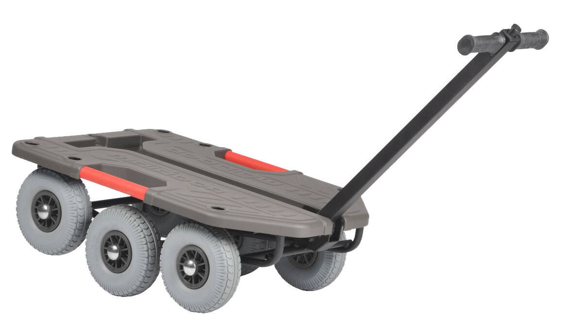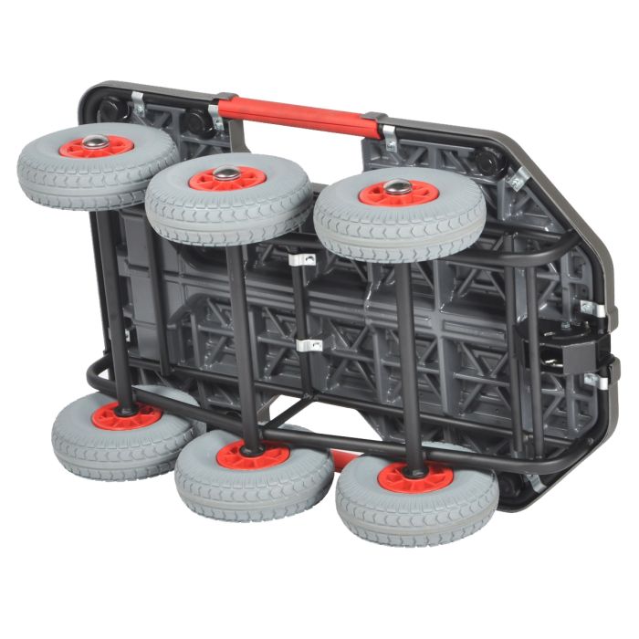 Chariot tout terrain 6 roues pneumatiques charge 250 kg plateau en ABS nervur? et grain? – dimensions du plateau : L 940 x l. 640 x H 350 mm