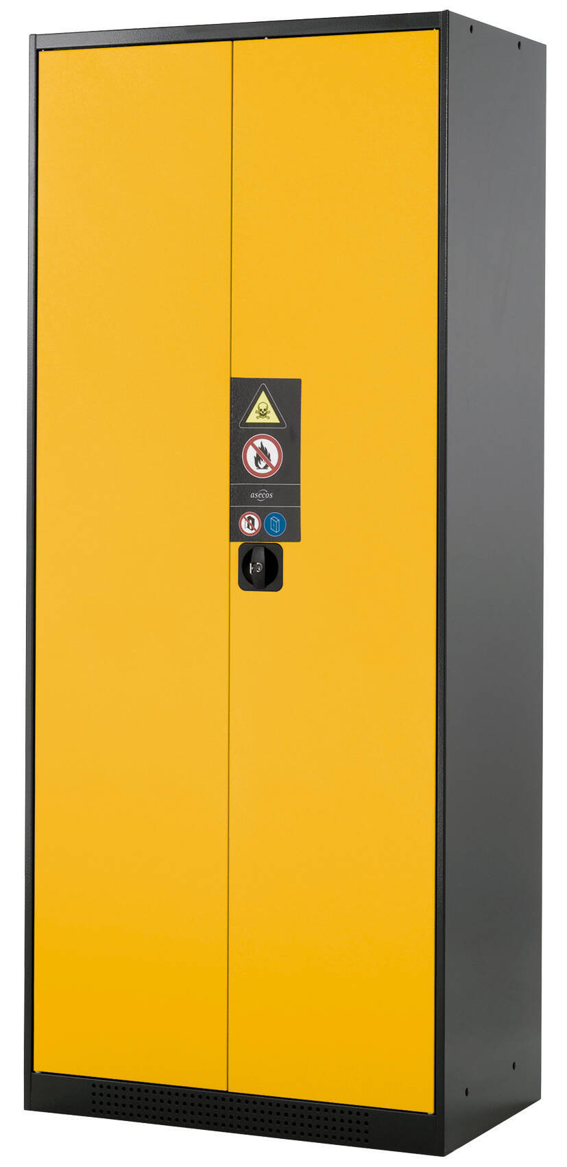 Armoire de sûreté portes pleines + 1 bac rétention – dimensions : L 810 x P 520 x H 1950 mm coloris jaune