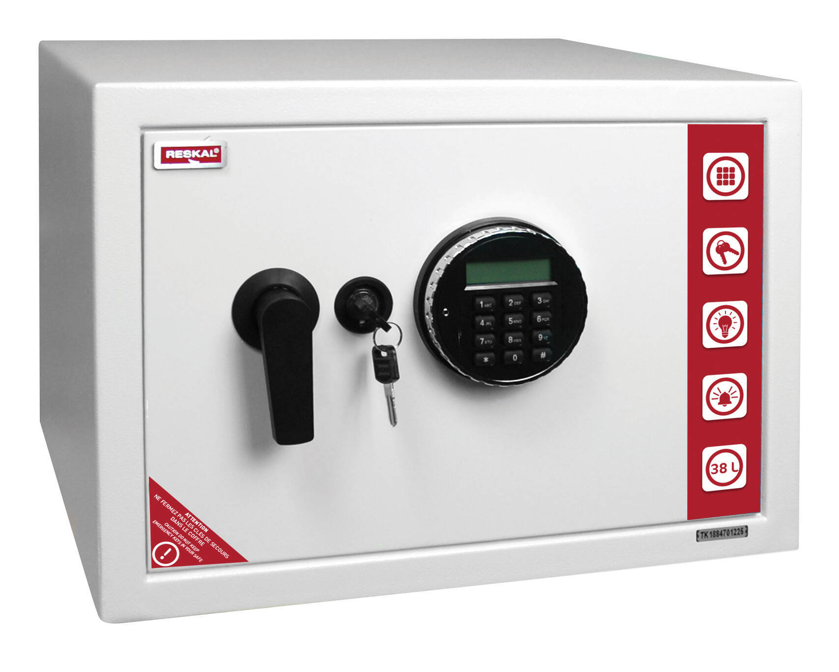 Coffre de sécurité volume : 35,5 litres serrure électronique – dimensions : L 430 x P 350 x H 310 mm – coloris blanc