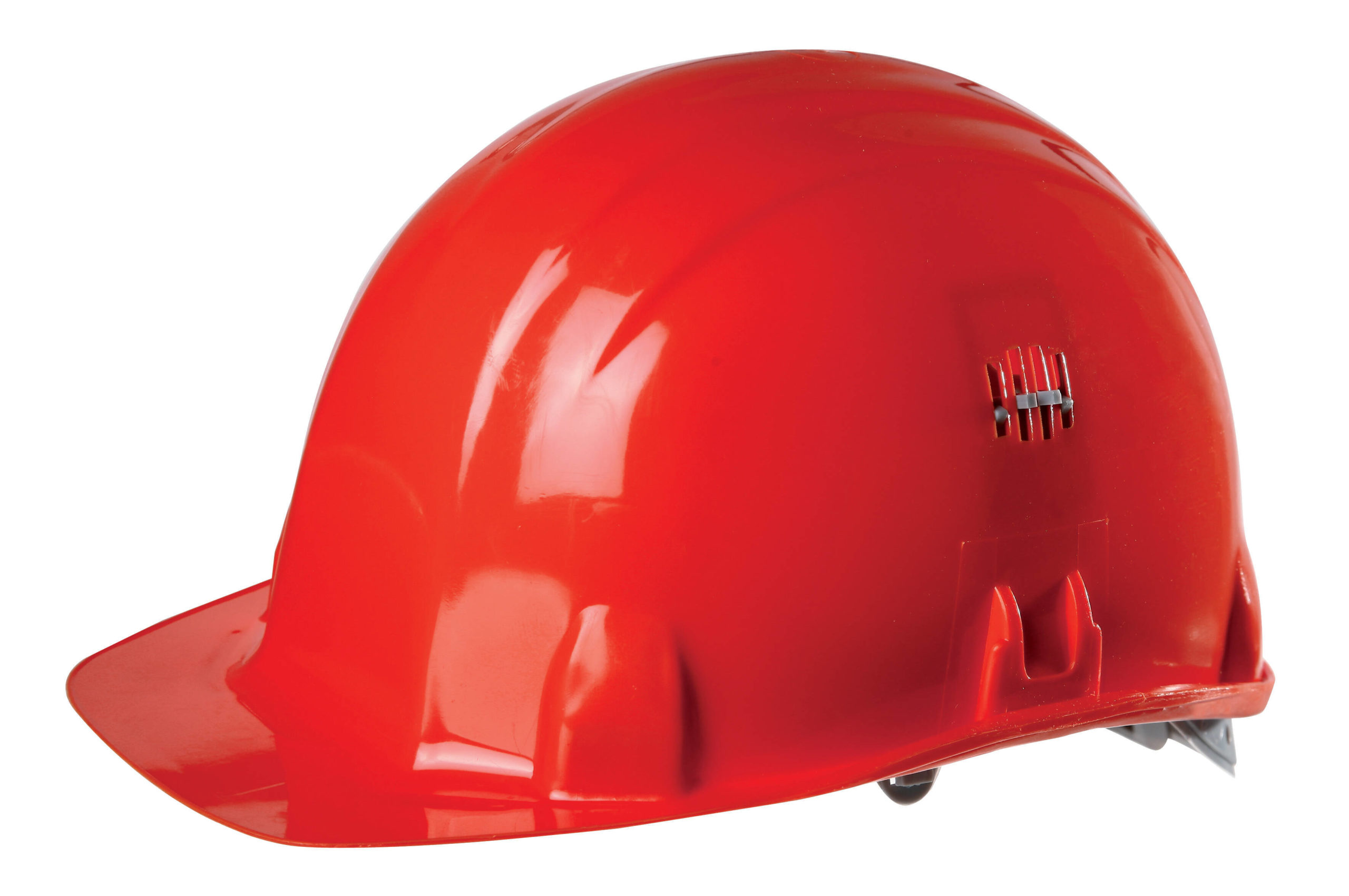 Casque de chantier aéré en polyéthylène avec garniture de confort et bandeau tour de tête – coloris rouge