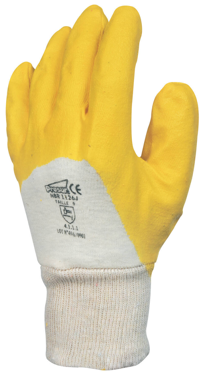 Gants nitrile enduction ultra légère support 100% coton – poignet tricot – tailles : 7 à 10 – coloris jaune