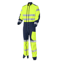 Combinaison haute visibilit? « LUK LIGHT » – Satin 4/1, 60% coton, 40% polyester 300 g/m_. – Bandes r?tror?fl?chissantes Grises – Coloris Jaune / Marine – Tailles : S ? 4XL
