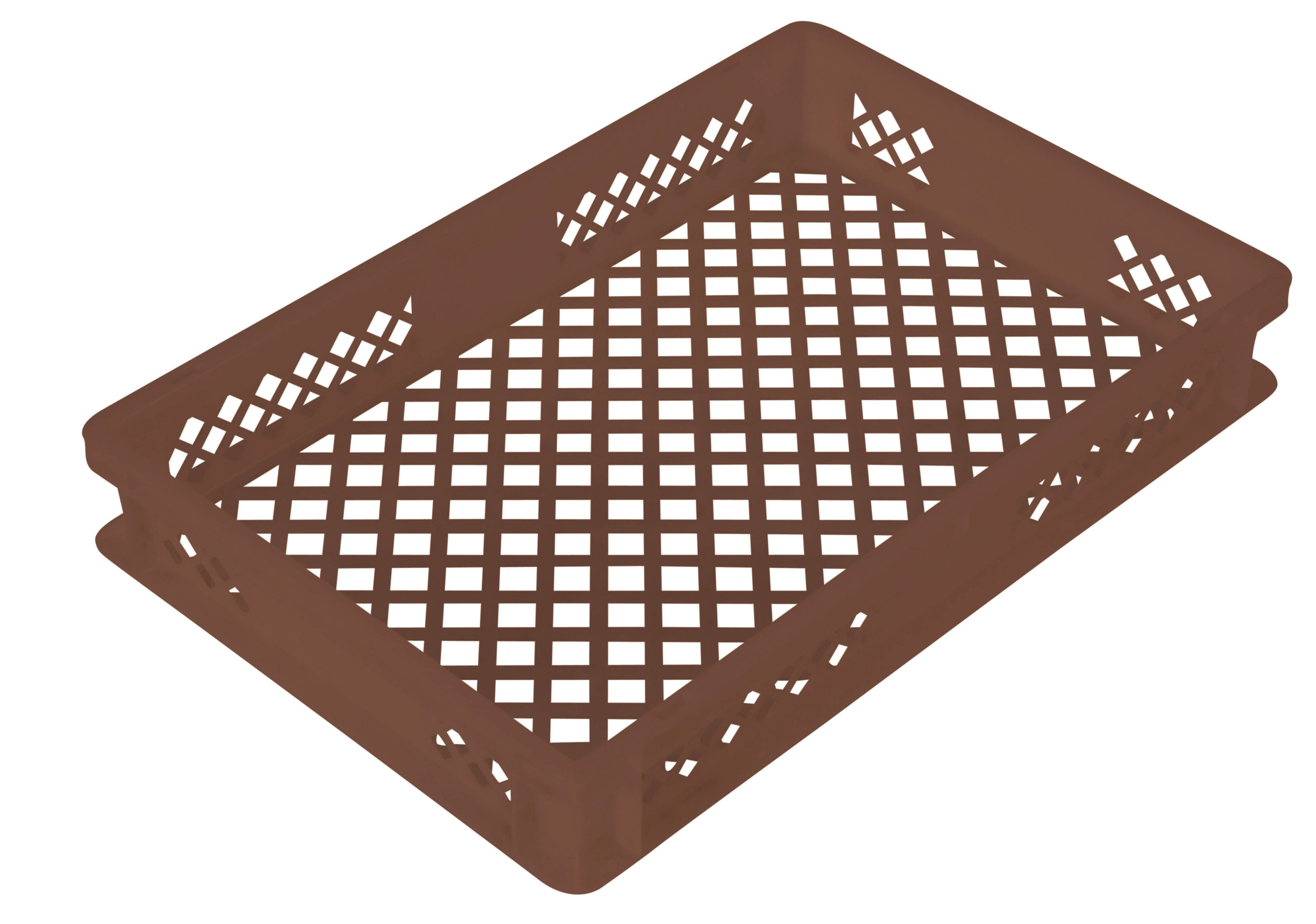 Bac gerbable fond et côtés ajourés en polyéthylène capacité : 15 litres – dimensions : L 600 x l. 400 x H 90 mm – coloris : brun