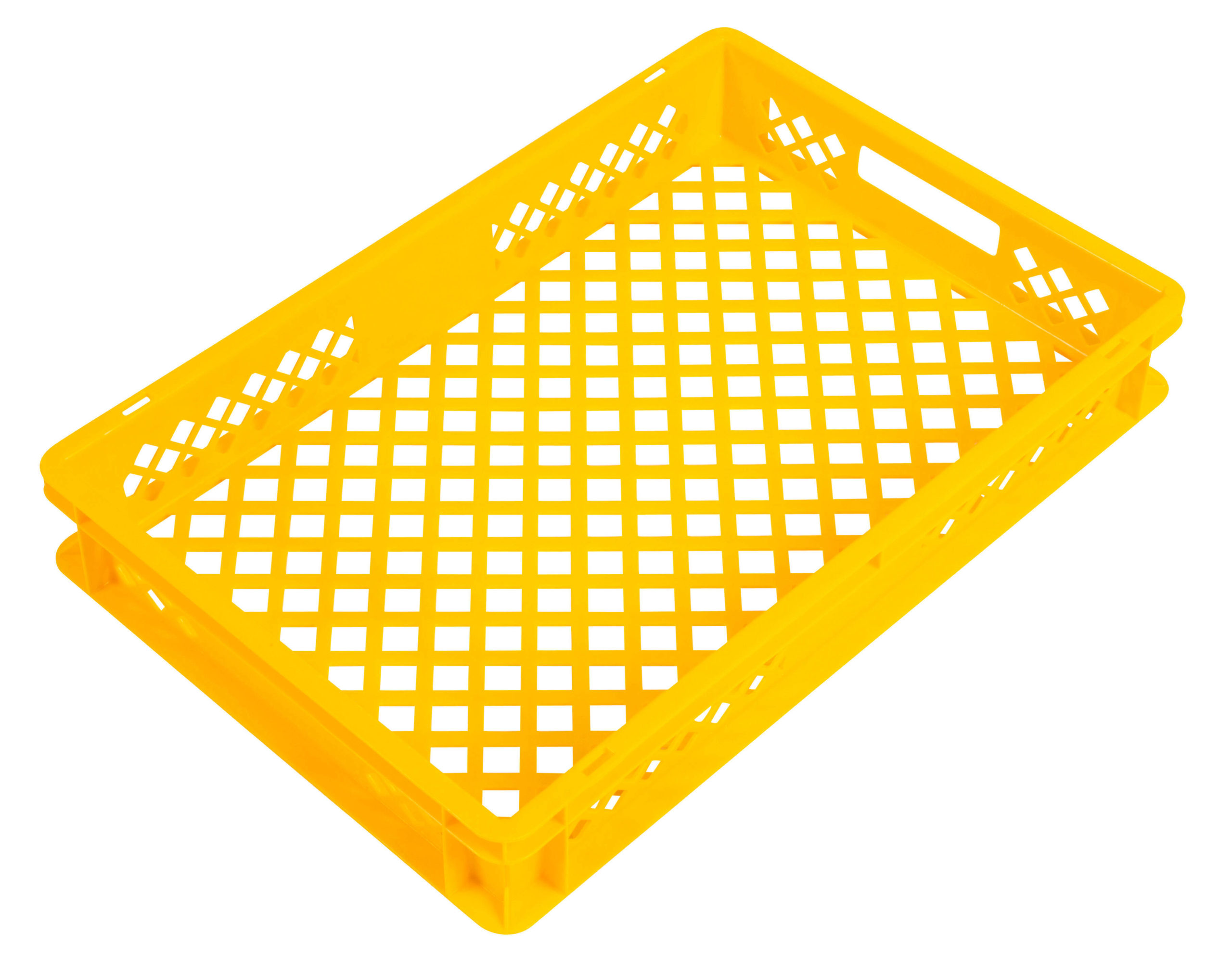 Bac gerbable fond et côtés ajourés en polyéthylène capacité : 15 litres – dimensions : L 600 x l. 400 x H 90 mm – coloris : jaune