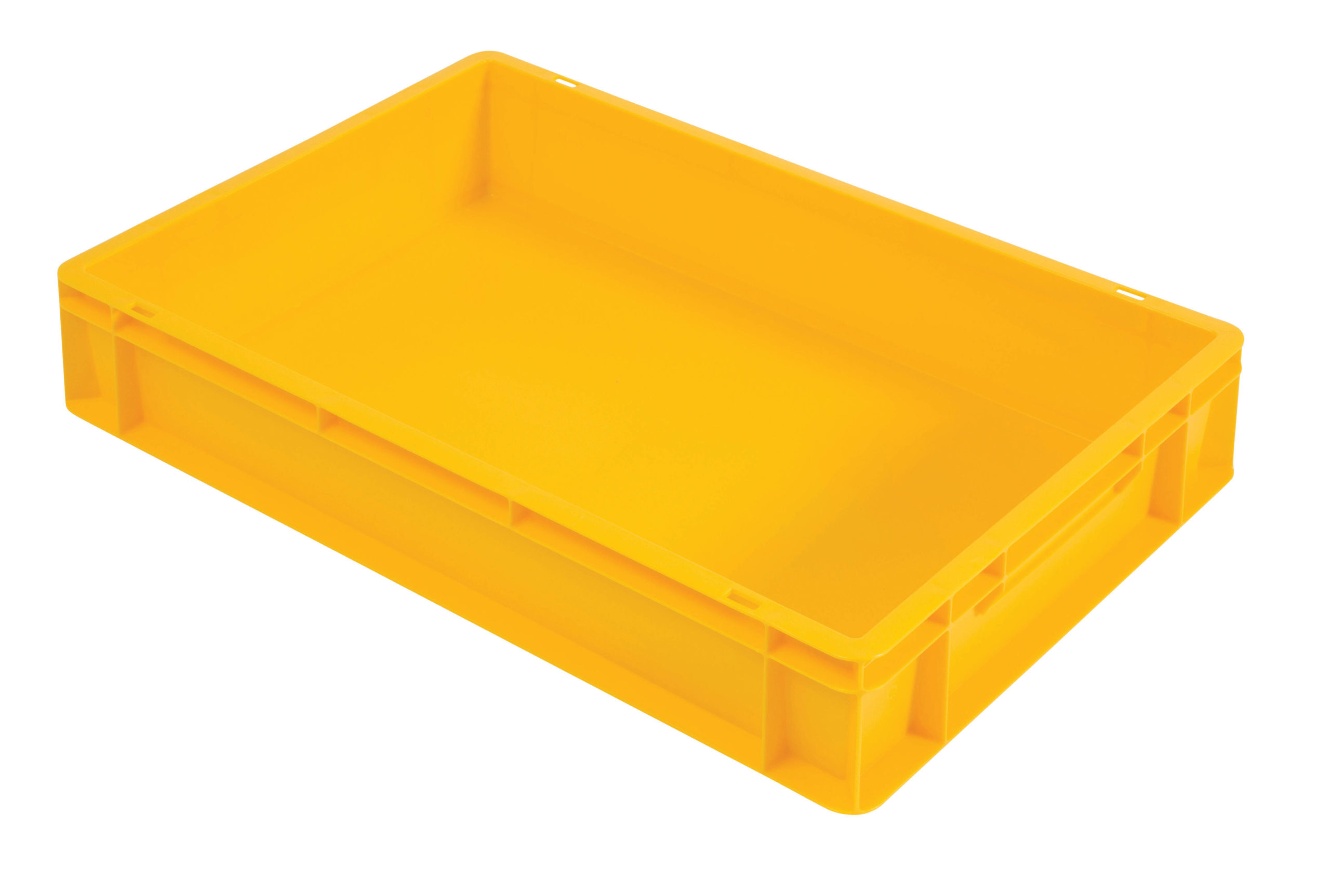 Bac gerbable fond et côtés pleins en polypropylène capacité : 20 litres – dimensions : L 600 x l. 400 x H 120 mm – coloris : jaune