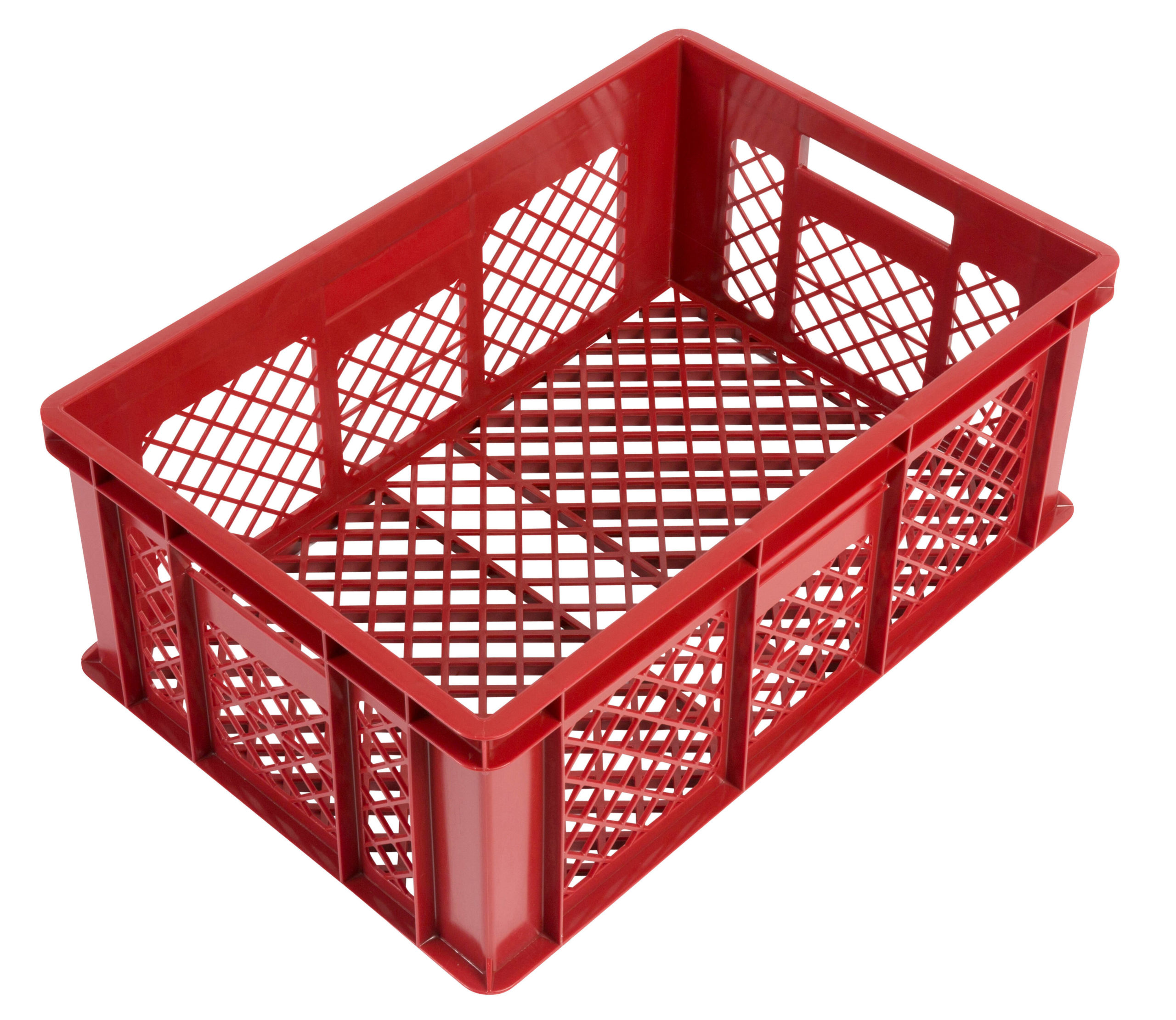 Bac gerbable fond et côtés ajourés en polyéthylène capacité : 45 litres – dimensions : L 600 x l. 400 x H 240 mm – coloris : rouge