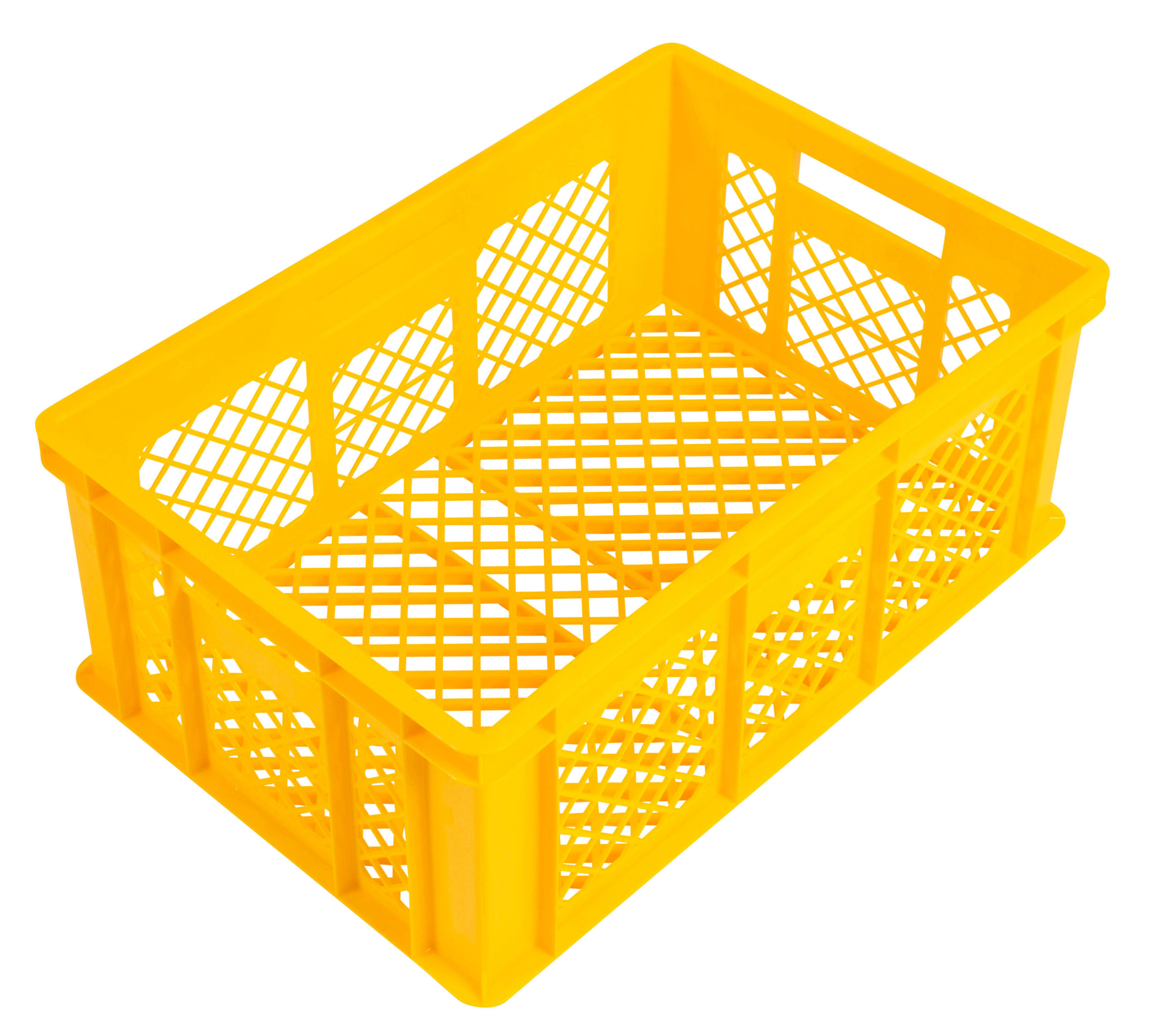 Bac gerbable fond et côtés ajourés en polyéthylène capacité : 45 litres – dimensions : L 600 x l. 400 x H 240 mm – coloris : jaune