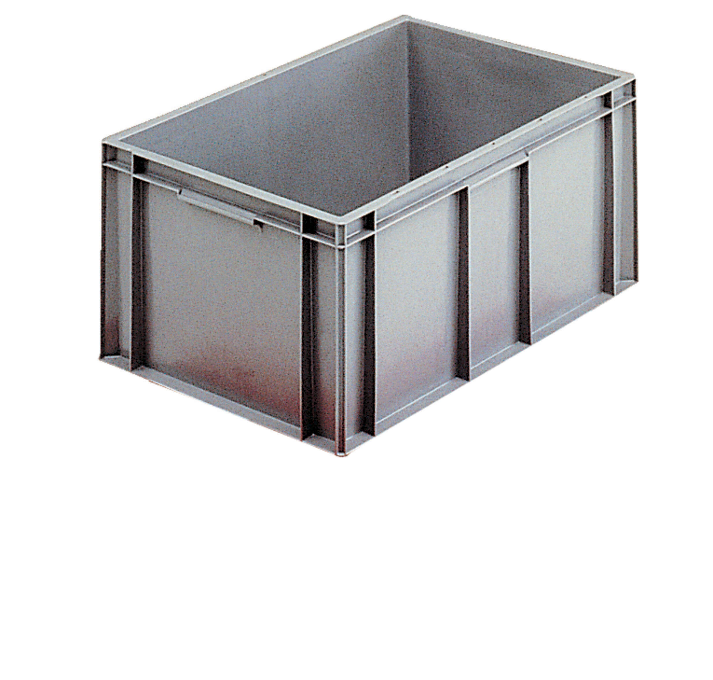 Bac Norme Europe gerbable fond et parois pleins 54 litres – dimensions : L 600 x l. 400 x H 280 mm – coloris gris