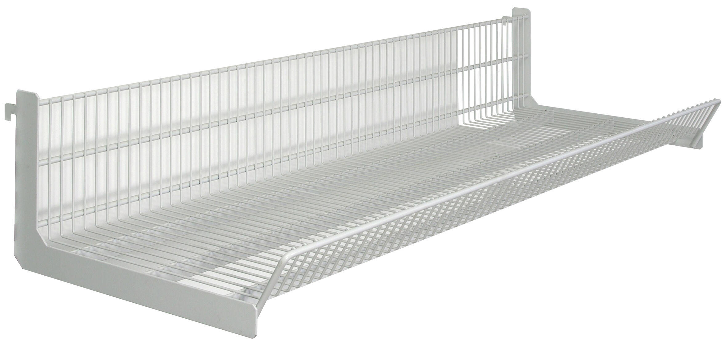 Corbeille grillagée en fil d’acier époxy blanc – dimensions : l. 1000 x P 428 x Hauteur avant 115 mm