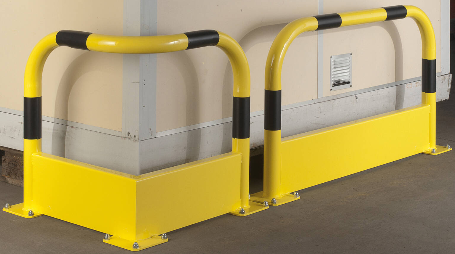 Arceau de protection droit avec plinthe tube en acier Ø 60 mm – dimensions : L 1000 x H 640 mm – coloris jaune/noir