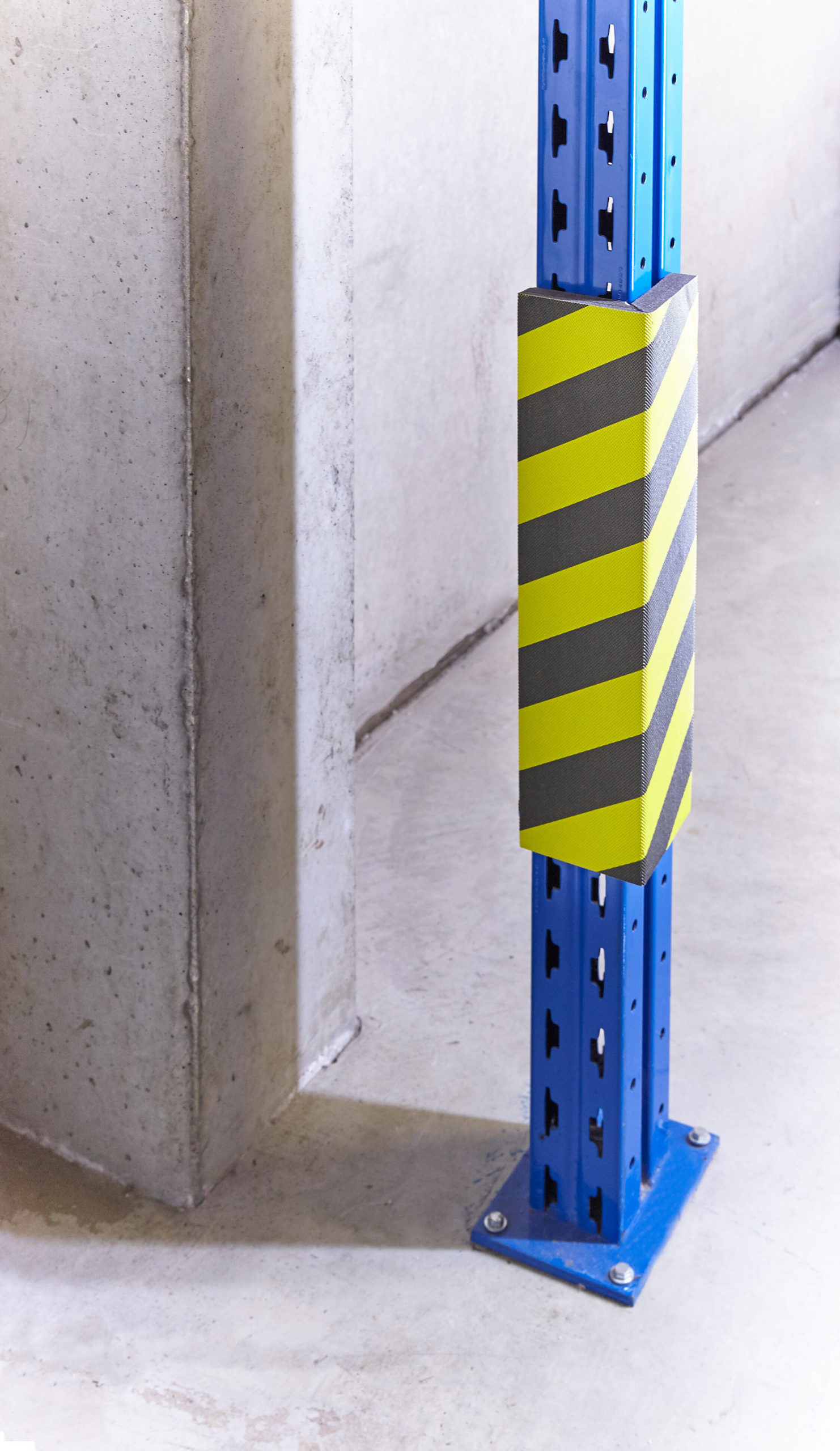 Mousse de protection d’angle Ep. 25 mm revêtement jaune et noir gaufré anti-arrachement – dimensions : H 1200 x L 125 x l. 125
